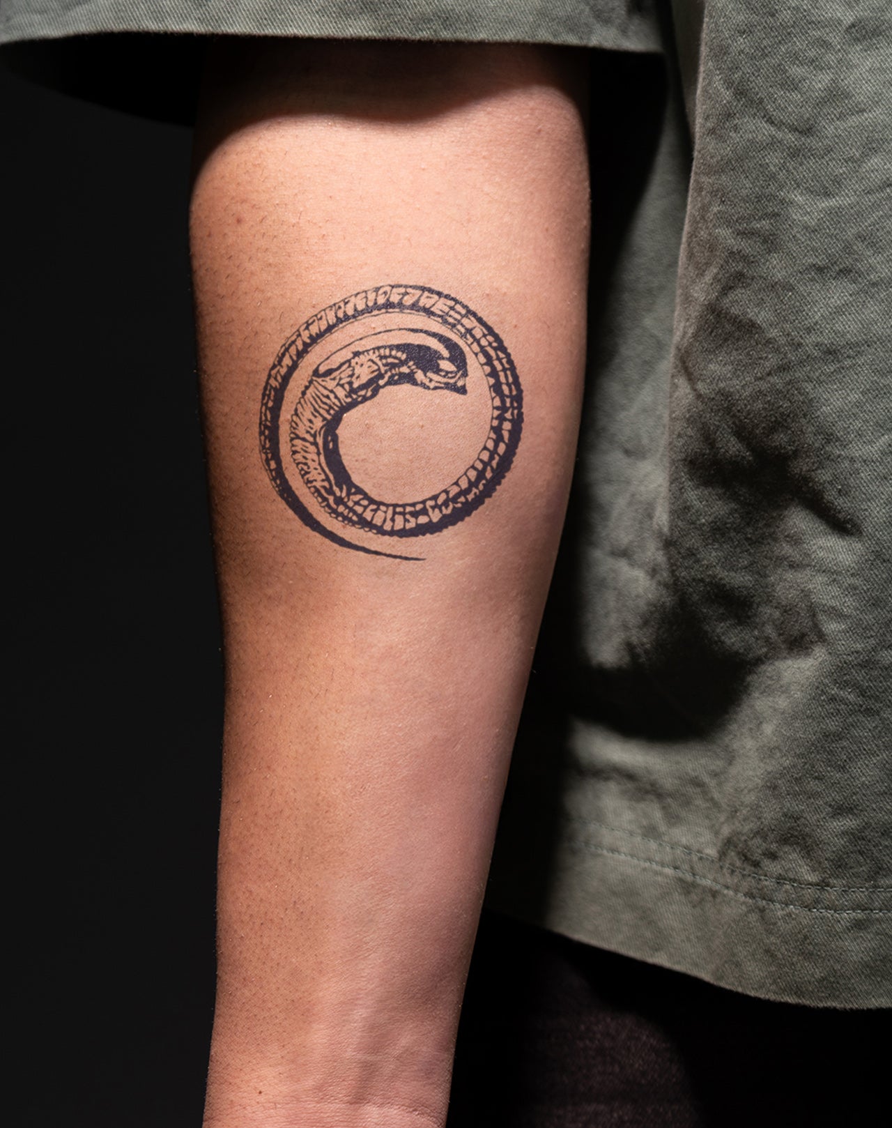 Introducing Alien Head, a 4x4 inch temporary tattoo designed by mahlo_tattoo. This highly detailed design of a curled up alien will last 1-2 weeks and is easy to apply. Show off your unique style and love for all things extraterrestrial with Alien Head!