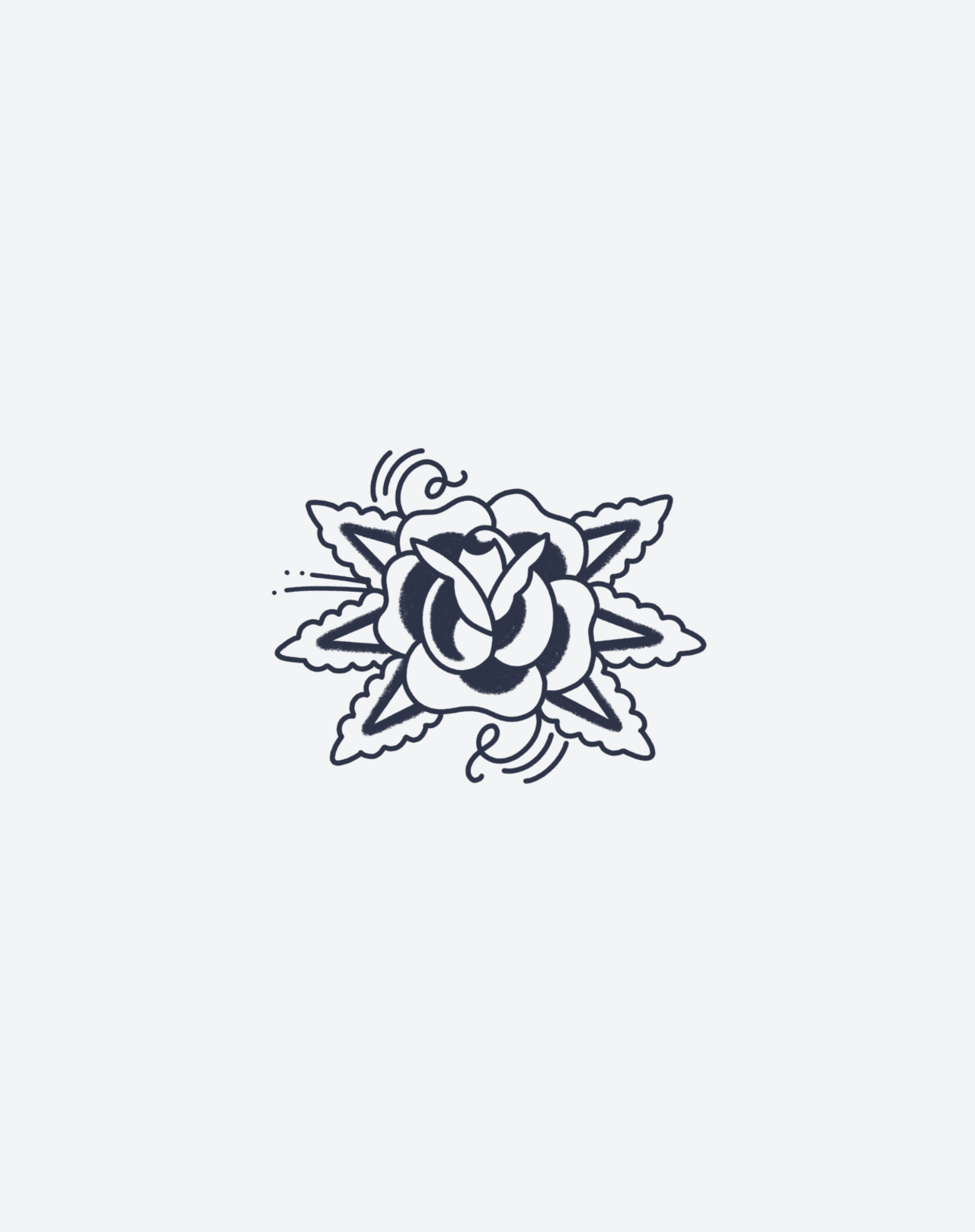 Bold Botanist is a 4x4 inch design by @emmypokes that honors timeless beauty through confident simplicity. A traditional rose blooms at the heart of this piece, its dark petals and balanced leaves rendered with bold precision. The thick outlines and rhythmic shading celebrate the roots of old-school tattoo craft, where every curve carried both permanence and grace. Long a symbol of love, resilience, and devotion, the rose here embodies the steady courage of tenderness. This 1–2 week EZINK temporary tattoo’s versatile symmetry makes it striking on the shoulder, forearm, or calf—an enduring emblem of beauty that never fades with time.