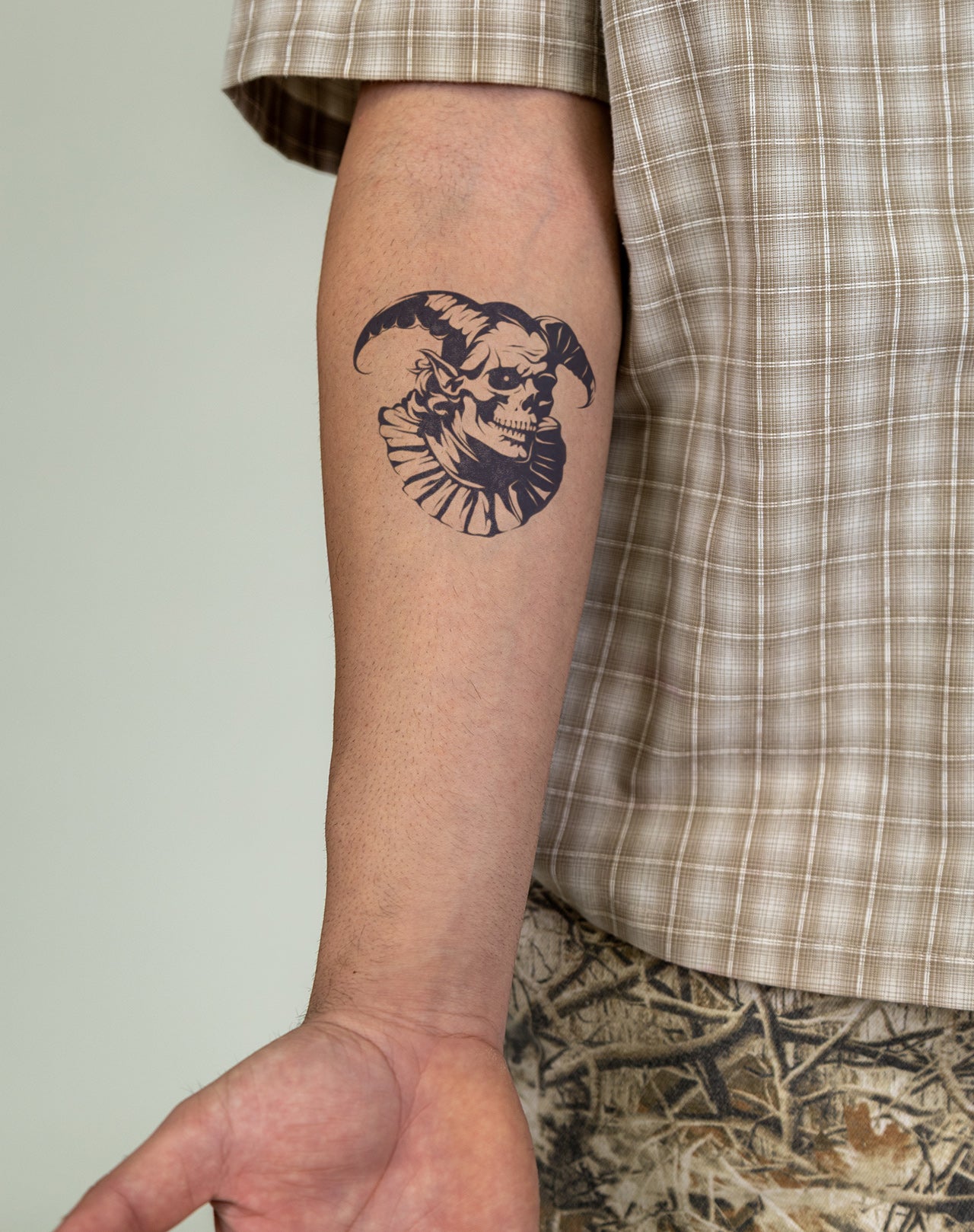 Transform into a hauntingly beautiful creature with Clown's Revenge! This 4x4 inch EZINK temporary tattoo boasts a striking design of a blackwork demonic clown by mahlo_tattoo. It's easy to apply and lasts 1-2 weeks, making it the perfect accessory for parties or everyday wear. Stand out and express your edgy side with Clown's Revenge!
