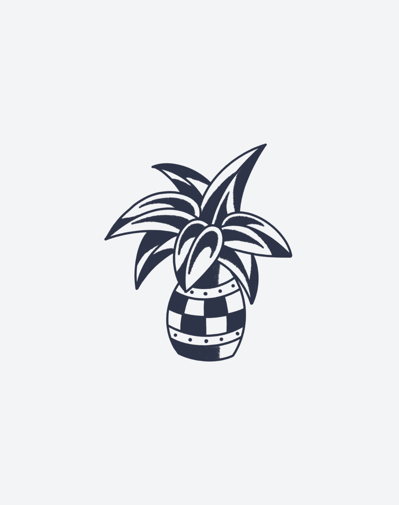 Concrete Jungle is a 2x3 inch design by @emmypokes that finds calm in contrast. A potted plant bursts from a checkered vessel, its bold leaves and geometric base merging nature’s rhythm with urban grit. The clean, graphic linework pays homage to the roots of traditional tattoo style—solid, balanced, and built to last—while the motif speaks to growth that thrives anywhere it’s planted. A quiet emblem of resilience and self-cultivation, this 1–2 week EZINK temporary tattoo sits naturally on the wrist, ankle, or shoulder blade—reminding the wearer that even in the hardest places, something beautiful can take root.