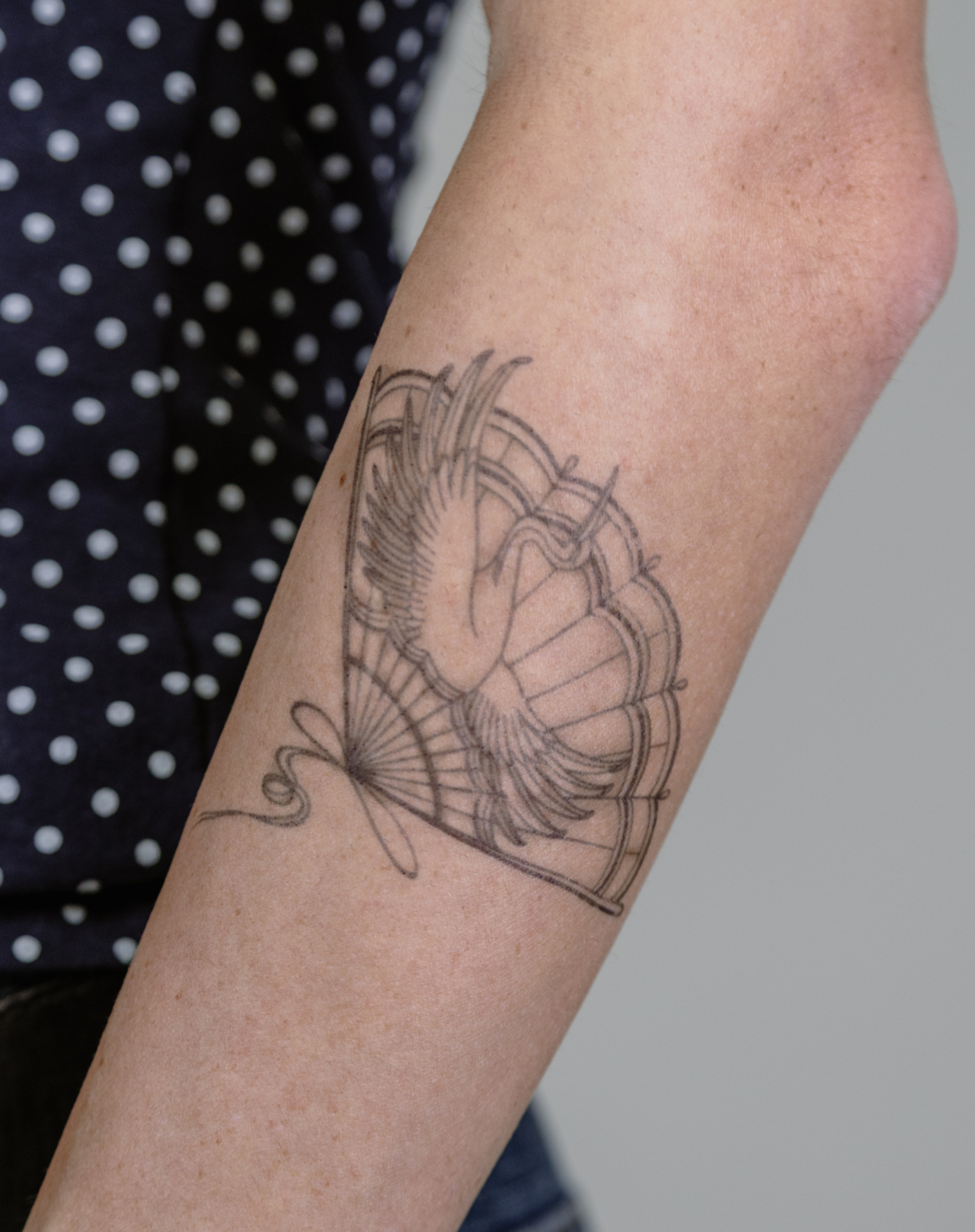 Crane in the Calm is a 4x4 inch design by @caitlynjtattoo, capturing the grace of nature's delicate balance. The serene crane takes flight above a softly curved fan, its wings gently outstretched in a peaceful, fluid motion. This minimalist design evokes tranquility, freedom, and beauty, making it an ideal symbol for those seeking calm amidst the chaos. Delivered as a 1–2 week EZINK temporary tattoo.