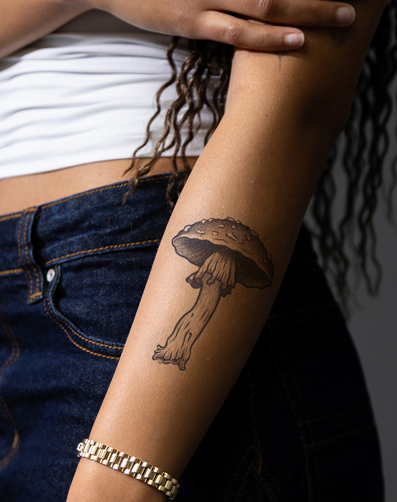 Root yourself in the wild with Earthbound, a 2x4 inch EZINK temporary tattoo by @mambo_tattoos. Featuring a lone mushroom, this design symbolizes resilience, mystery, and the connection between life and decay. Lasting 1-2 weeks, it’s for those who thrive in the shadows and embrace the unknown.