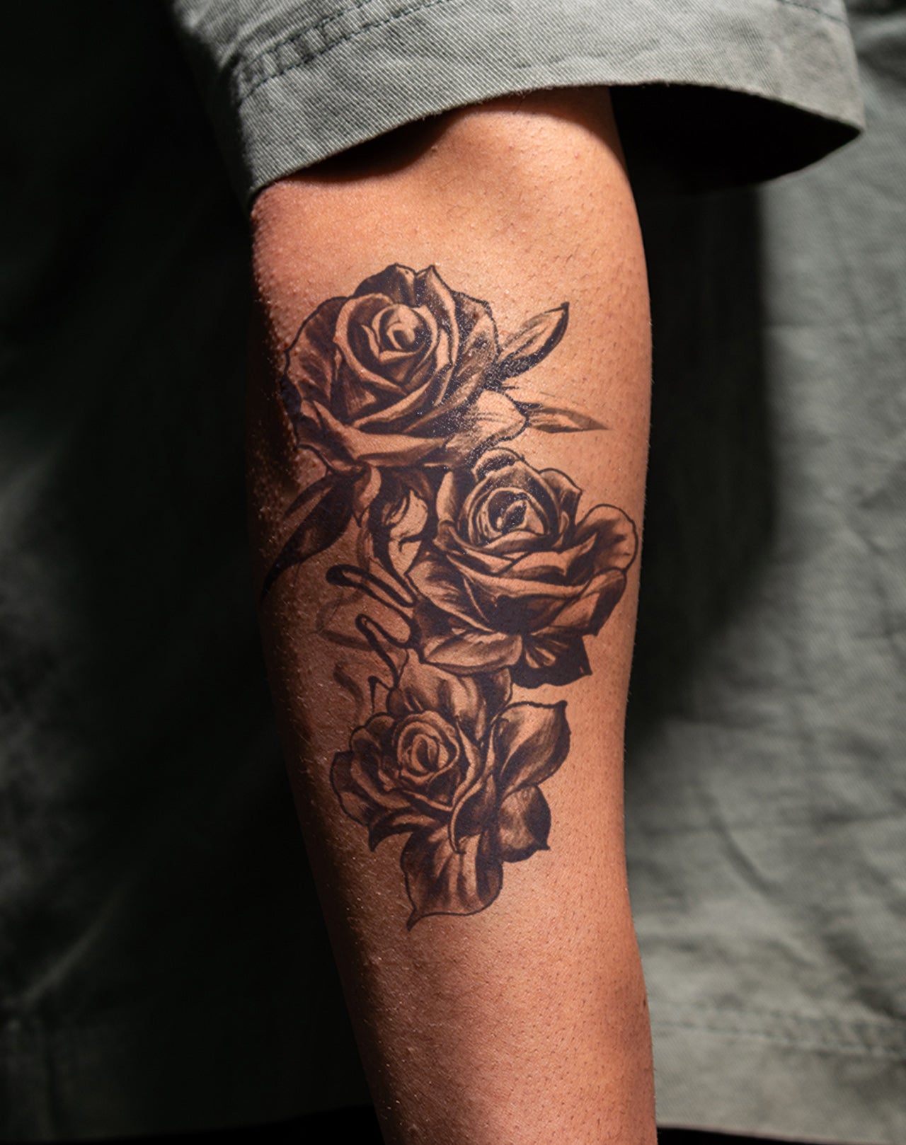 Elegant Roses temporary tattoo featuring 3 realistic roses. This 4x7 inch tattoo lasts 1-2 weeks, perfect for adding a touch of elegance and beauty to any outfit or occasion. Easy to apply and remove, these roses are sure to make a lasting impression.