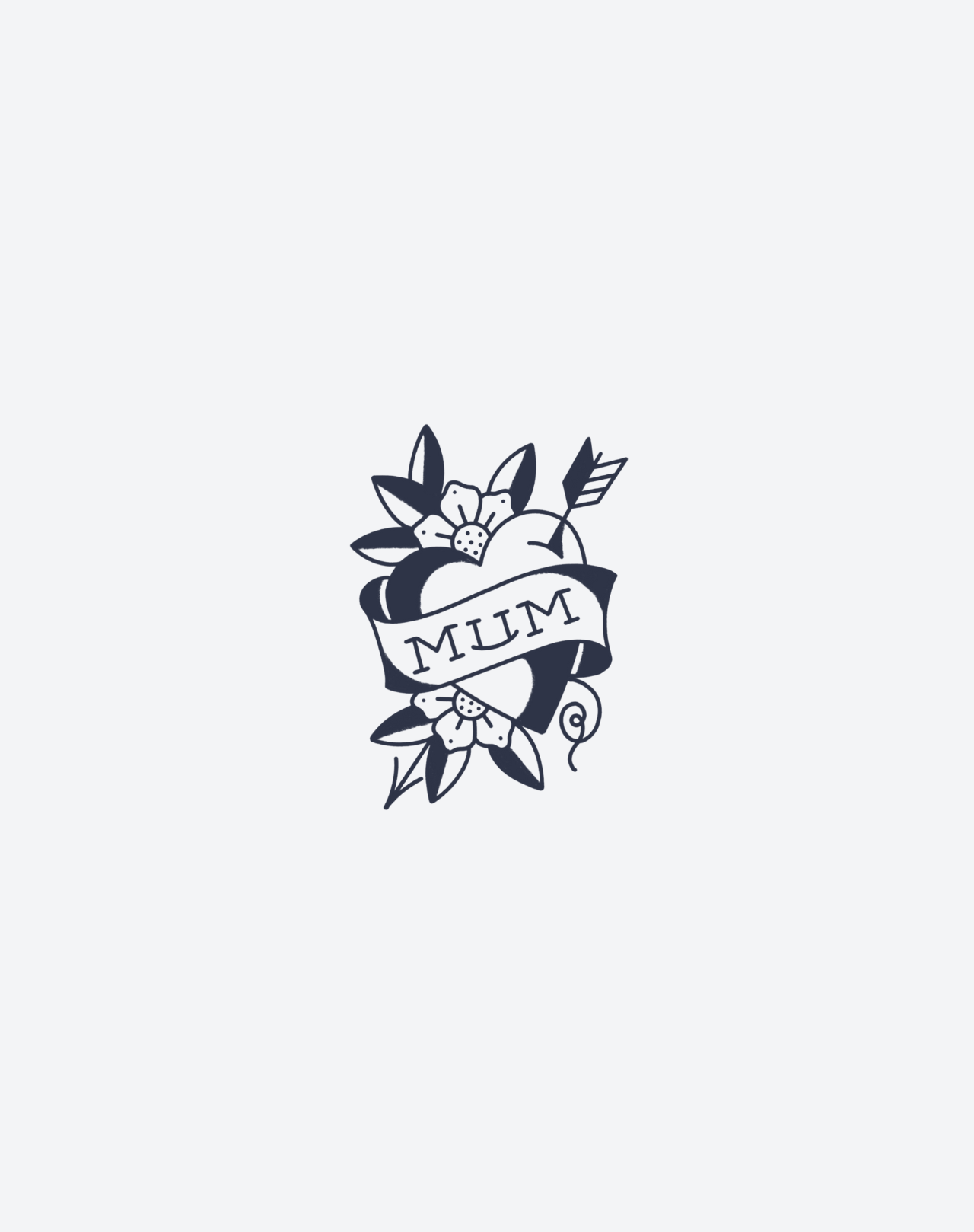 Ever True is a 4x4 inch design by @emmypokes that honors love in its purest form. A classic heart wrapped in a banner reading MUM is framed by bold leaves and blossoms, its thick lines and solid shading echoing the roots of vintage tattoo tradition. The design carries both warmth and strength—a tribute to loyalty, care, and the quiet power of unconditional love. Steeped in the language of old-school ink, it transforms a universal sentiment into a symbol that never fades. This 1–2 week EZINK temporary tattoo rests naturally on the bicep, shoulder, or chest—an ode to the bonds that ground and guide us.