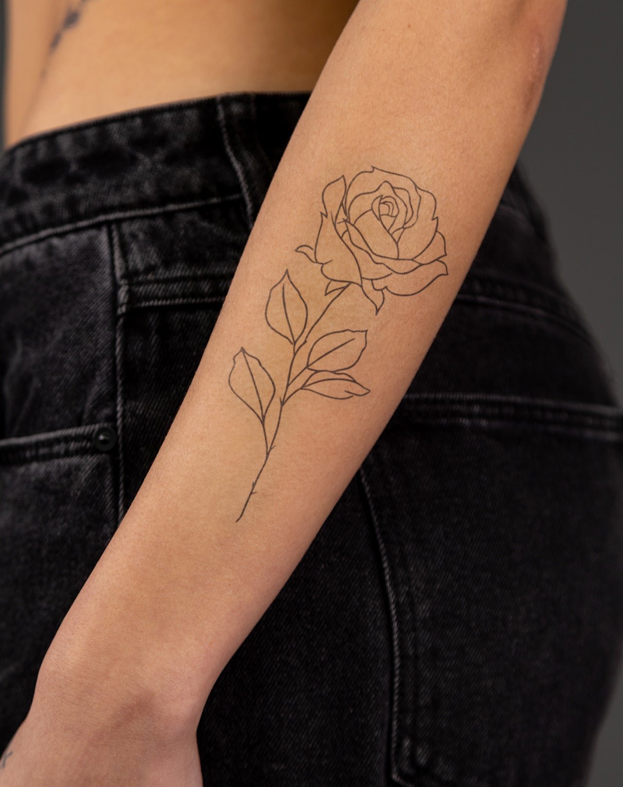 Experience unique body art without a long-term commitment with Fineline Rose! Our 3x6" semi-permanent tattoo is a fun and economical way to explore different looks and placements, lasting for up to two weeks. Unlock your creativity and give yourself the freedom to express yourself through body art!