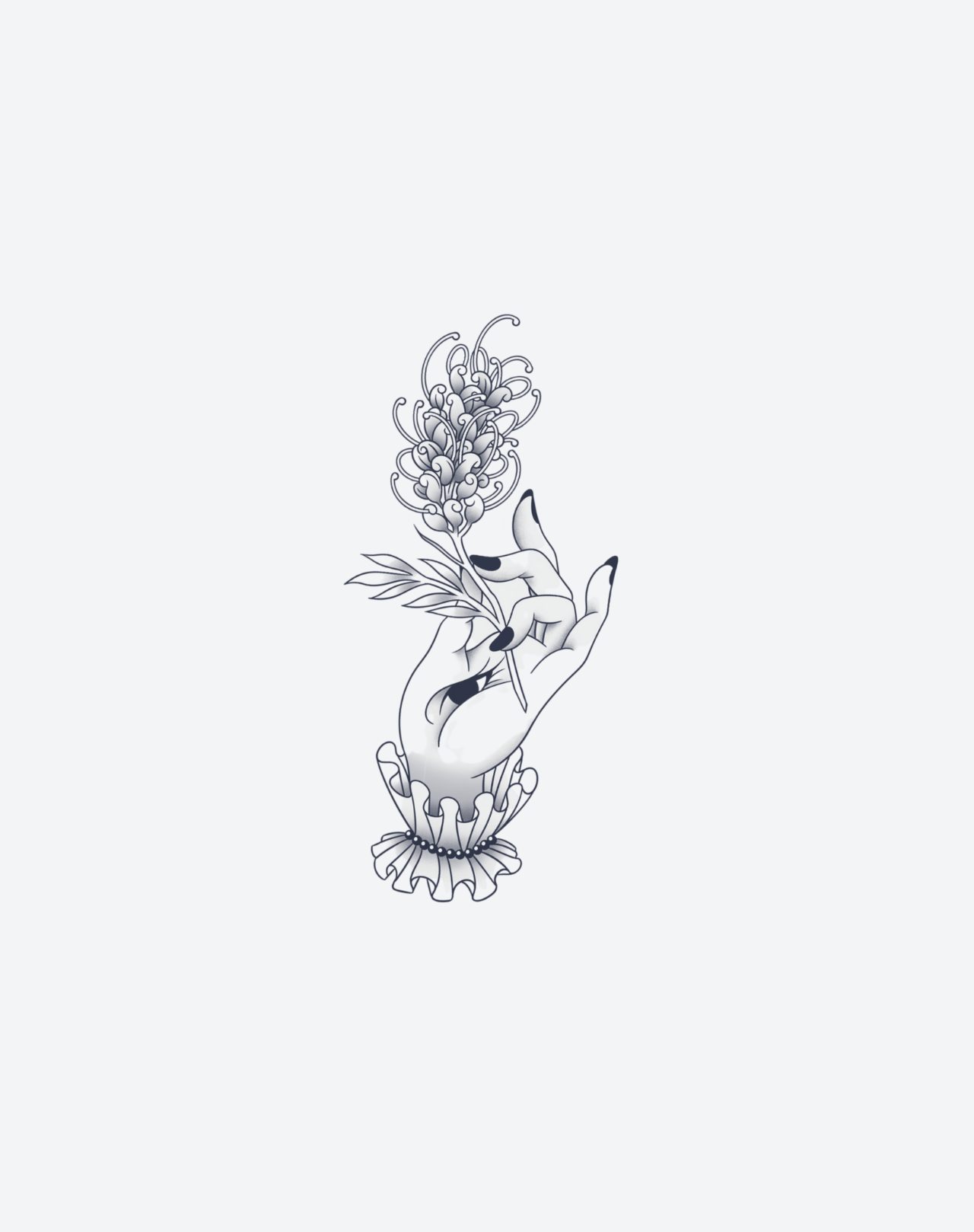 Floral Offering is a 3x6 inch design by @madeye.ink that captures grace, ritual, and reverence. A delicate hand extends a sprig of blossoms, rendered with fine shading and flowing detail that speaks of care and intention. Symbolizing generosity, connection, and the beauty in giving, this piece carries both elegance and quiet strength. This 1–2 week EZINK temporary tattoo is perfect for placement along the forearm, thigh, or shoulder—serving as a reminder that even the smallest gestures can hold deep meaning.