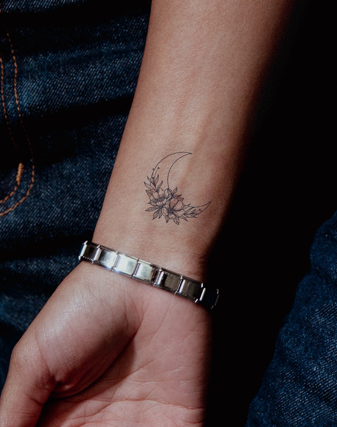 Experience celestial beauty with our Flowery Moon temporary tattoo! This enchanting 2x2-inch design features a crescent moon adorned with delicate flowers, adding a touch of mystique and elegance to your look. Lasts 1-2 weeks, perfect for testing your dreamy style before committing to a permanent tattoo.