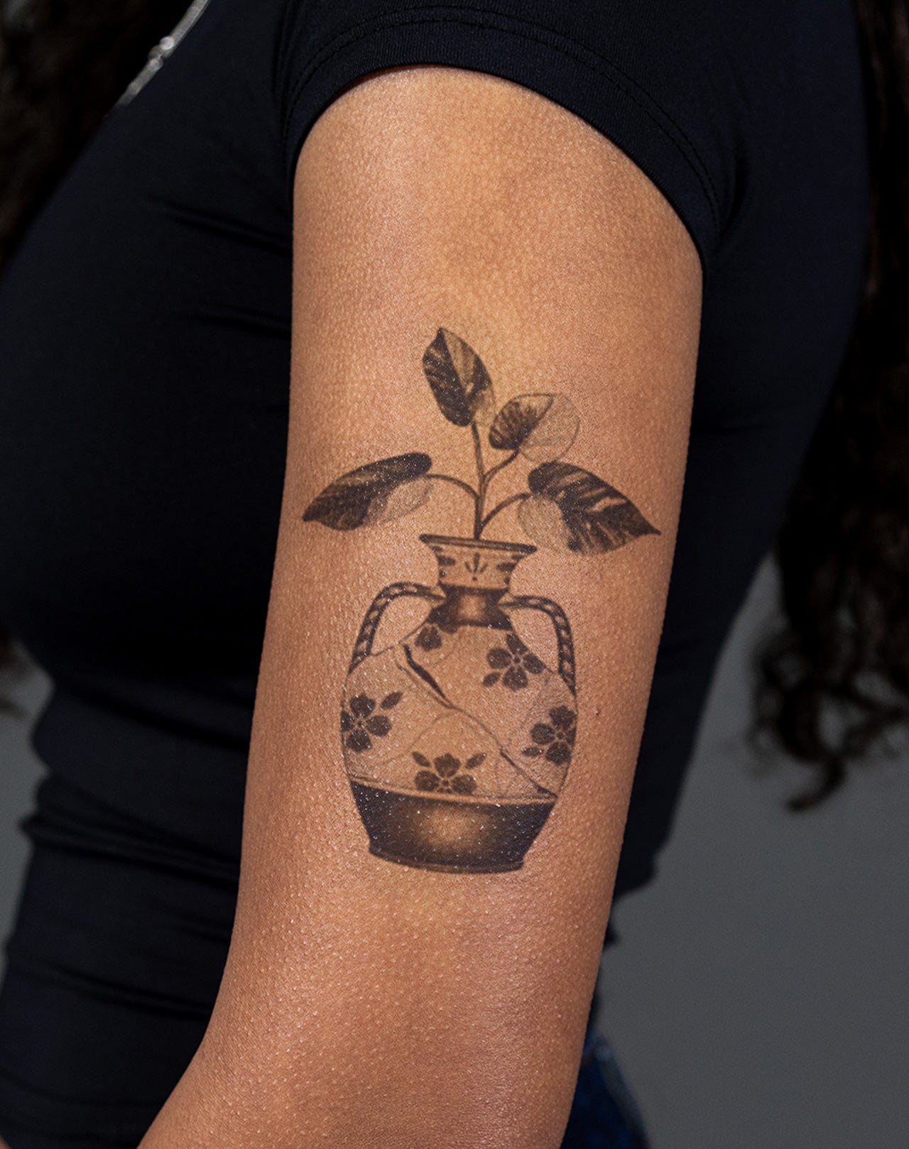 Fractured Grace is a 3x6 inch design by @emmalakintattoo that speaks to resilience and renewal. Featuring a delicately shaded vase bound by visible cracks yet still holding vibrant leaves, it carries the spirit of imperfection as strength. The interplay of fragility and growth evokes themes of healing and transformation, reminiscent of kintsugi—the art of embracing flaws as part of beauty. This 1–2 week EZINK temporary tattoo’s balanced composition makes it ideal for placement on the forearm, calf, or upper arm, serving as a reminder that brokenness can bloom into something whole and enduring.