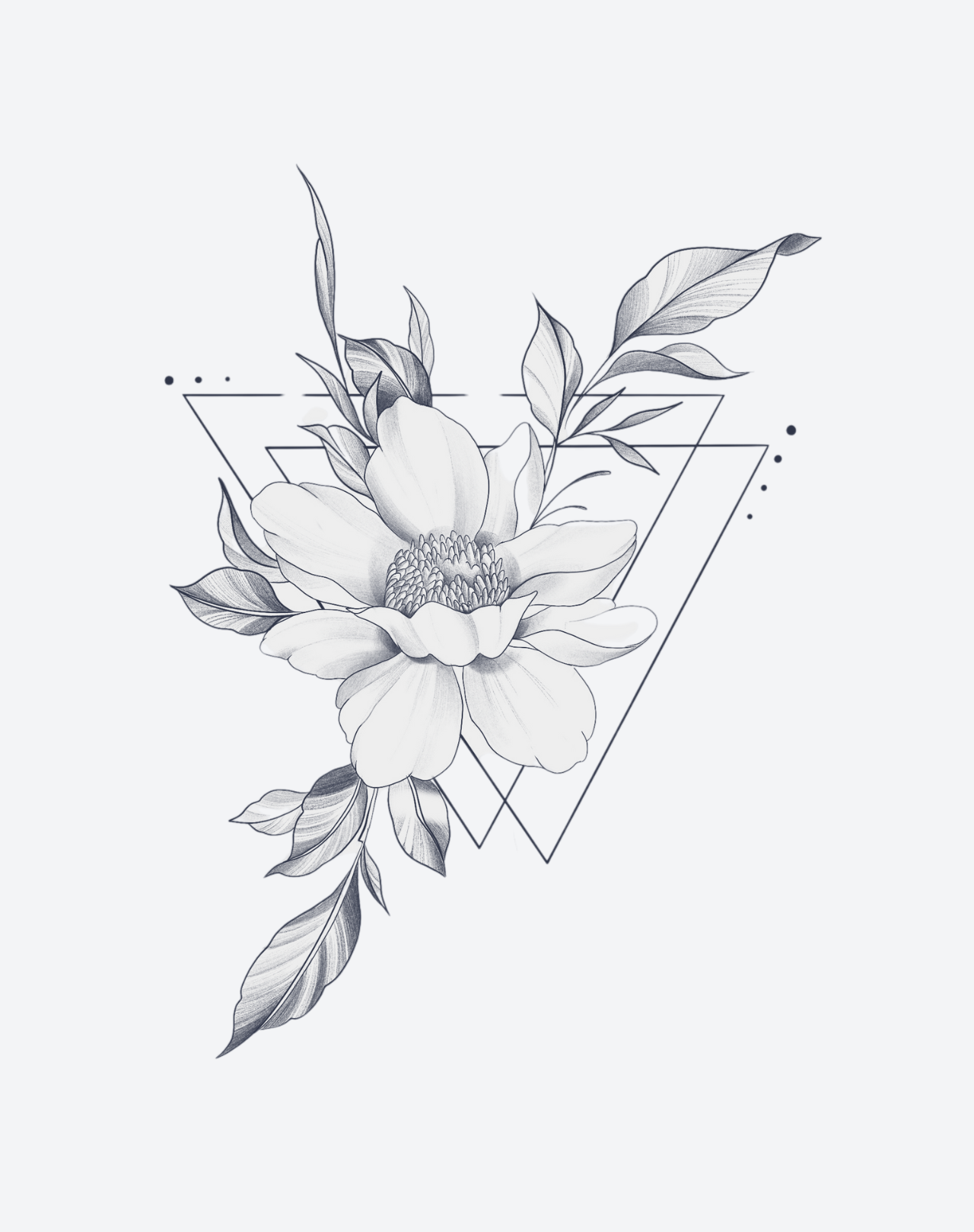 Garden of Symmetry is a balanced 6.5x6.5 inch design that merges organic bloom with ornamental precision. Radiating petals and mirrored foliage form a harmonious composition where nature meets geometry. Created by @ivy__tattooist, this EZINK temporary tattoo lasts 1–2 weeks, perfect for those who find beauty in structure, stillness, and the rhythm of floral symmetry.