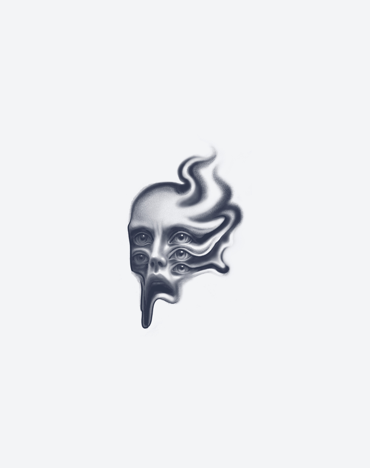Hallucina is a 2x3 inch design by @maya.tatt, a hypnotic vision of perception unraveling. A face bends and ripples into spectral echoes of itself, each eye watching from a shifting layer of reality. This piece distorts the boundaries between body and consciousness—where identity liquefies, and awareness drifts between dream and waking. With its soft grayscale realism and fluid surrealist motion, it invites contemplation of the self as something both infinite and dissolving. This 1–2 week EZINK temporary tattoo lies beautifully on the forearm, neck, or sternum—a quiet statement of introspection, expansion, and illusion.