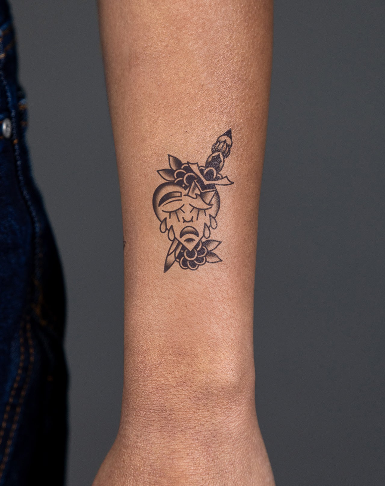 Heart's Last Cry is a bold 2x3 inch design that distills heartbreak into powerful simplicity. A cracked heart leaks a single teardrop, framed in thick black lines that emphasize finality and emotional depth. Created by @pottertatts, this EZINK temporary tattoo lasts 1–2 weeks, perfect for those who wear their truth, grieve with grace, and rise from the ache.