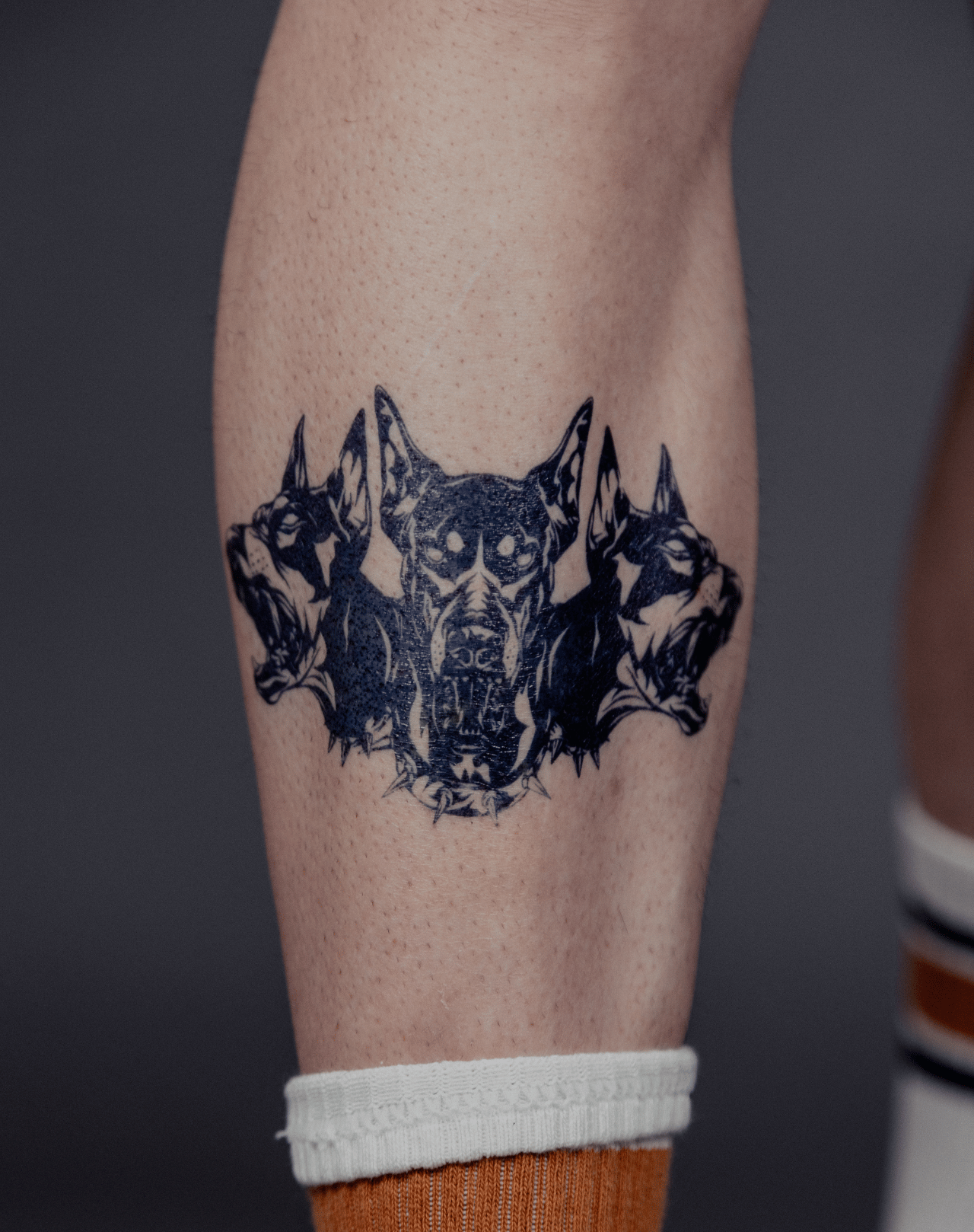 Unleash the beast with Cerberus Howl, a 4x7 inch EZINK temporary tattoo by @mahlo_tattoo. Featuring the snarling heads of the legendary three-headed doberman dog, this design embodies power, guardianship, and the chaos that lurks at the gates of the underworld. Lasting 1-2 weeks, it’s for those who walk the line between fury and control.