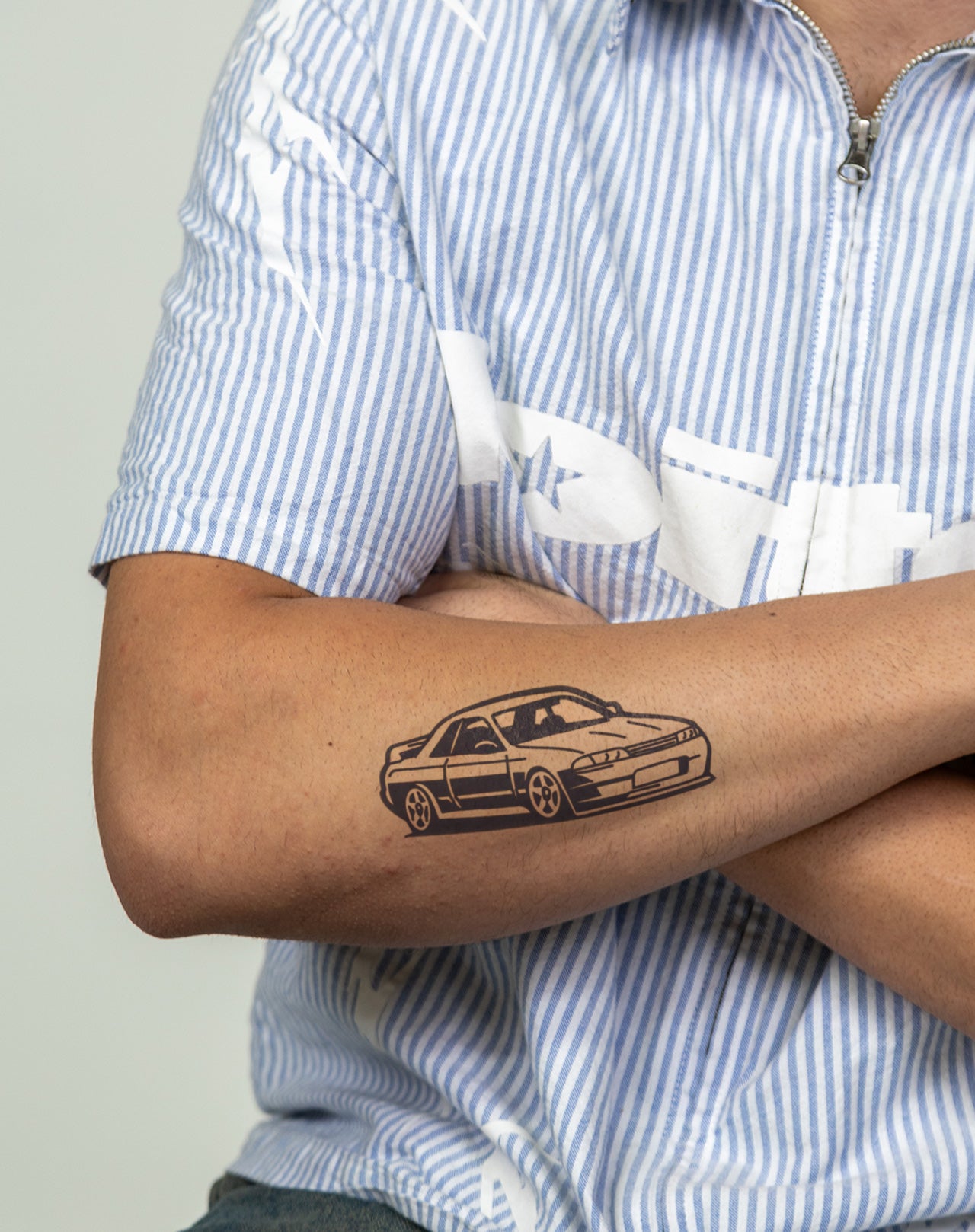 Express your love for JDM cars with our 4x4 inch temporary tattoo! Lasting 1-2 weeks and resembling a real tattoo, this design is perfect for car enthusiasts. Show off your passion for JDM in a fun and temporary way.
