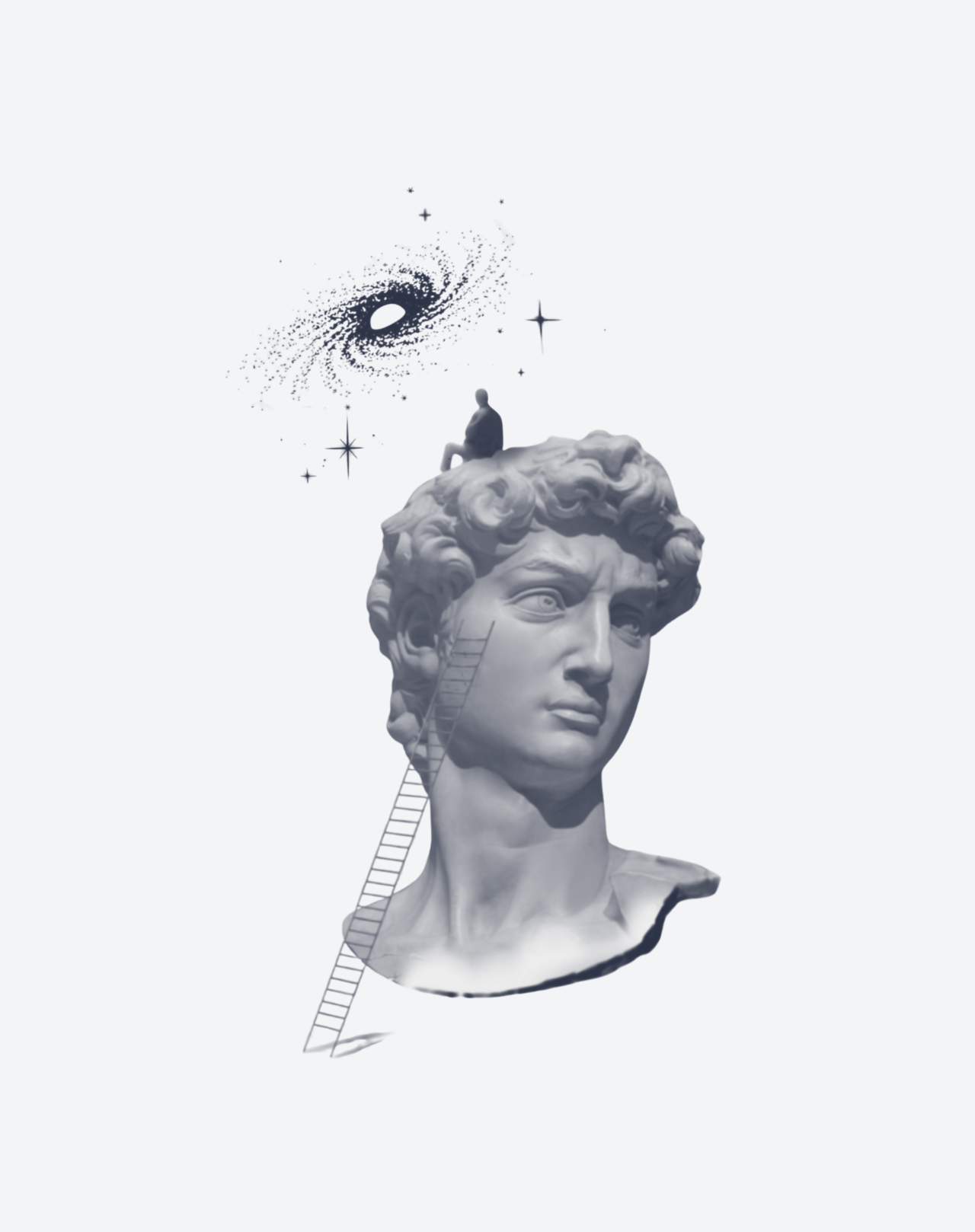 Ladders to Infinity is a 4x7 inch temporary tattoo by @ruffin.tattoo that merges classical sculpture with futuristic exploration. Featuring a wireframe ladder scaling the bust of Michelangelo’s David and leading toward a cosmic abyss, this piece contemplates the bridge between human creativity and the mysteries of the universe. The surreal composition and fine shading evoke curiosity, introspection, and the infinite potential of imagination. EZINK temporary tattoos last 1–2 weeks.