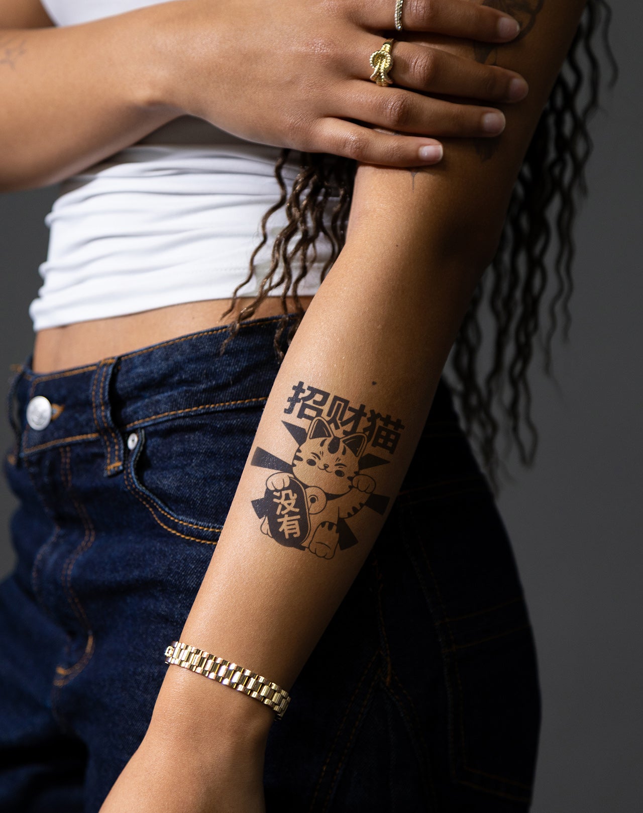 Unleash your inner feline with our Lucky Cat temporary tattoo! These 4x4 inch EZINK tattoos feature an adorable cartoon cat design that will last 1-2 weeks. Perfect for any cat lovers out there, this temporary tattoo allows you to express your love for felines in a fun and unique way.
