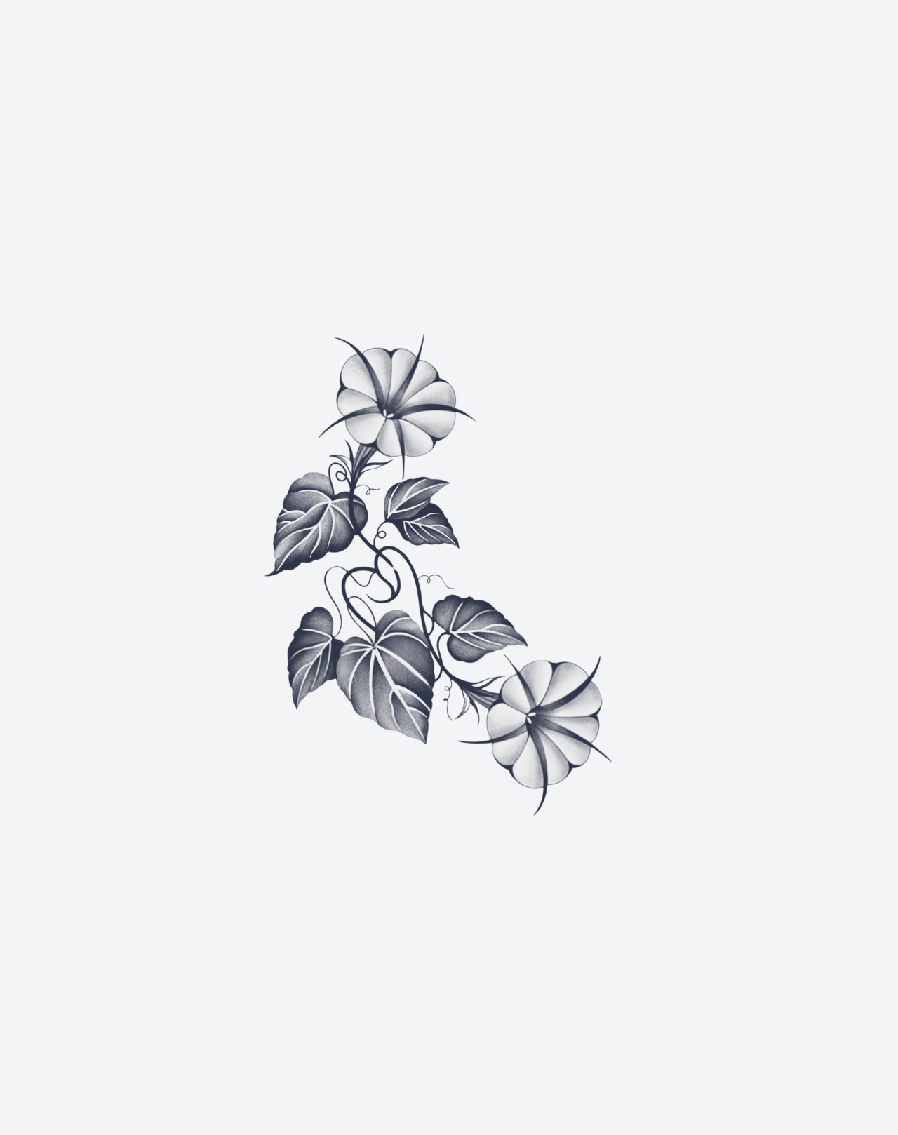 Morning Veil is a 4x4 inch design by @riesa_tattoo that unfurls with the quiet elegance of dawn. The trumpet-shaped blooms open against a tangle of curling vines and bold leaves, capturing both fragility and persistence. Symbolizing renewal, hope, and the fleeting beauty of each new day, the design balances delicacy with grounding strength. This 1–2 week EZINK temporary tattoo’s flowing vertical form makes it especially striking along the arm, thigh, or ribcage—serving as a reminder that even brief moments can carry lasting beauty.