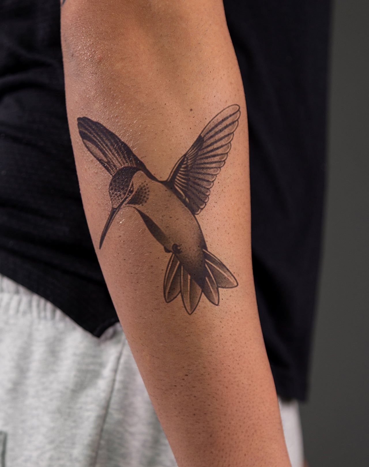 Nectar Seeker is a 3x6 inch design by @riesa_tattoo that captures the vibrant energy of the hummingbird mid-flight. Its wings are rendered with fine precision, a blur of motion balanced by the calm focus of its slender beak. Symbolizing joy, vitality, and the pursuit of life’s sweetest moments, the design reflects resilience wrapped in grace. This 1–2 week EZINK temporary tattoo’s dynamic shape makes it versatile for placement on the chest, wrist, or shoulder blade—serving as a reminder to pause, savor, and move with intention.