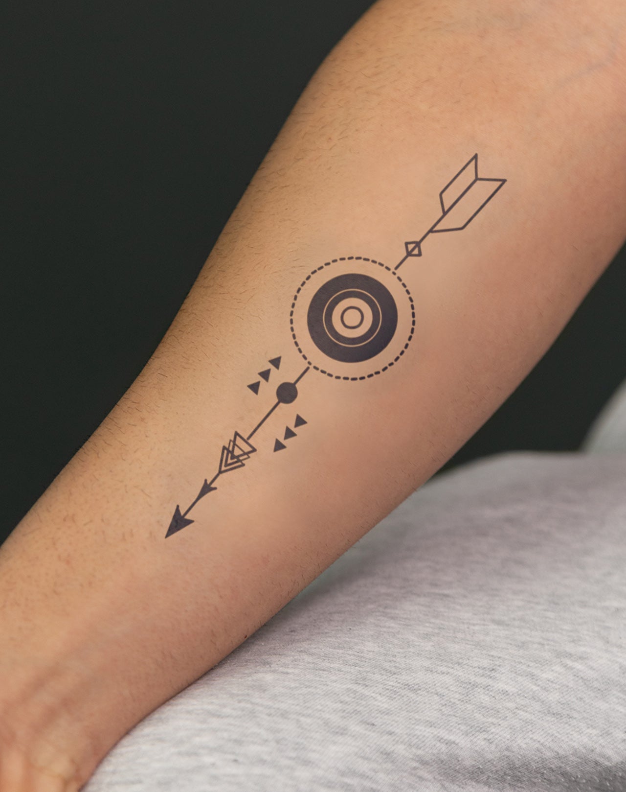 Stay on target with our On Point temporary tattoo! This sleek 3x6-inch design features a geometric arrow, symbolising direction, focus, and precision. Perfect for showcasing your determination and drive before committing to a permanent tattoo. Lasts 1-2 weeks, allowing you to stay "on point" with your style temporarily.