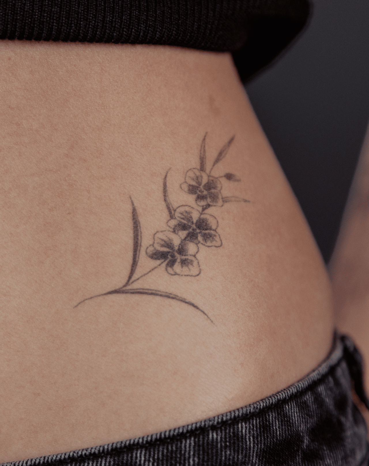 Promised Four is a 2x4 inch design by @amberpokes that captures a quartet of blooming orchids in graceful symmetry. With delicate shading and slender leaves, this botanical tattoo evokes themes of serenity, devotion, and timeless elegance. Delivered as a 1–2 week EZINK temporary tattoo.