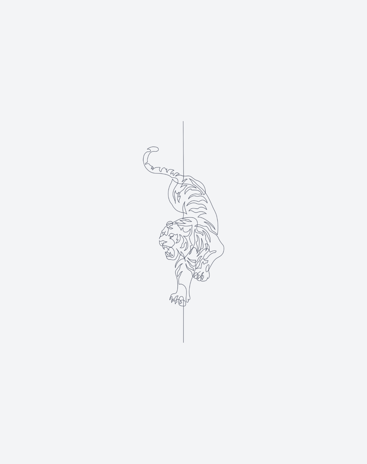 Prowl is a 2x4 inch design by @swinkInk that captures a tiger in mid-stride, emerging with poised aggression from a single vertical line. Created in a continuous-line style, this minimalist rendering conveys movement, tension, and raw power with elegant restraint. A symbol of silent strength and focused intent, this 1–2 week EZINK temporary tattoo is perfect for those who carry calm confidence beneath the surface.