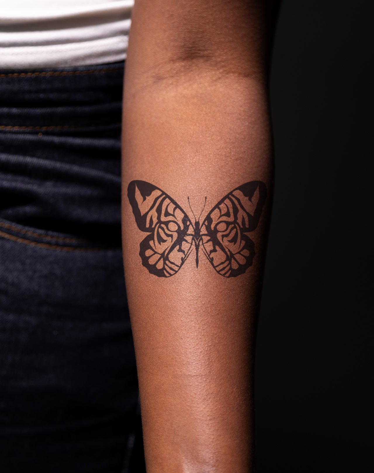 Unleash the wild elegance of the Savage Beauty EZINK temporary tattoo, a 4x4 inch design by @mahlo_tattoo. Featuring a butterfly with a fierce tiger face embedded in its wings, this piece embodies the harmony of strength and grace. With intricate details and bold contrasts, it’s a striking symbol of power and transformation. Lasting 1-2 weeks, this tattoo is perfect for those who embrace both their fierce and delicate sides.