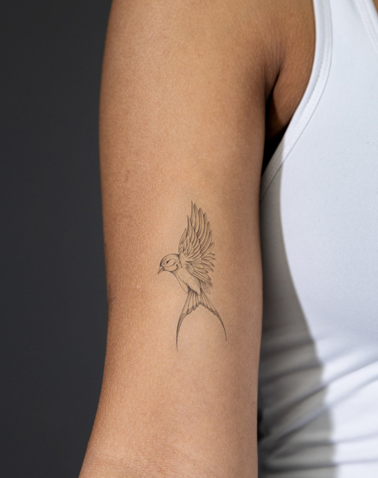 Soars is a 2x3 inch design by @shelltatts that captures a bird in mid-flight with exquisite grace and motion. Each feather is rendered with soft detail and balance, suggesting both freedom and focus. This tattoo embodies lightness, clarity, and the spirit of taking flight—perfect for those who value resilience and direction. EZINK temporary tattoos last 1–2 week.