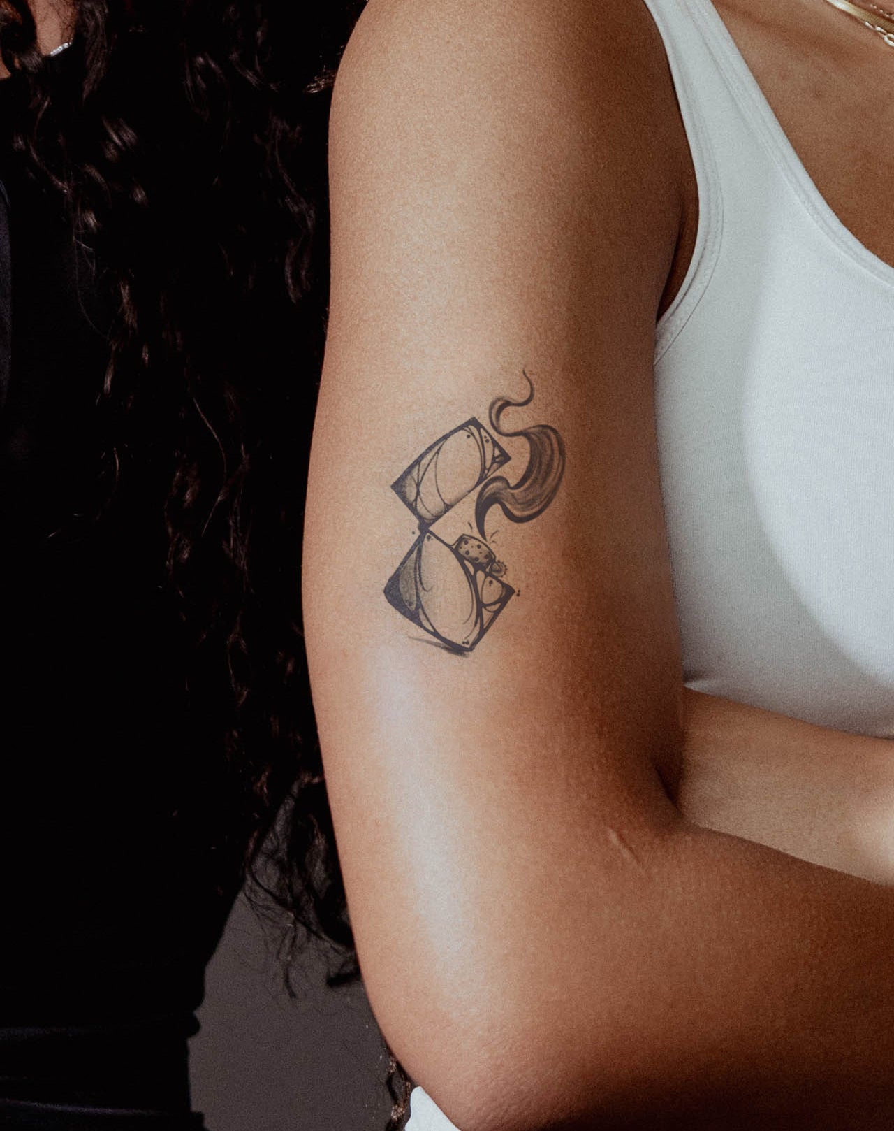 Spark is a sharp 2x3 inch design that turns a quiet moment into a symbol of heat and edge. A classic flip-lighter sits open, dark smoke curling upward from its flame like whispered intent, its metallic surface carved with organic, abstract forms. Created by @kirsten.tattoo, this EZINK temporary tattoo lasts 1–2 weeks, perfect for those who burn bright, think fast, and ignite change with a flick.
