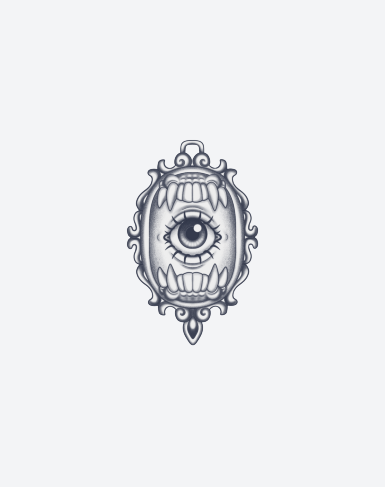 The Guardian Eye is a 2x3 inch design by @sophielutticktattoos that blends mysticism and menace into a bold ornamental emblem. At its center is an all-seeing eye surrounded by fangs and encased in an ornate frame, hinting at themes of protection, hidden power, and the thin line between watchfulness and warning. With its surreal, almost talismanic quality, this design is perfect for lovers of fantasy, dark folklore, and protective symbolism. This EZINK temporary tattoo lasts 1–2 weeks.