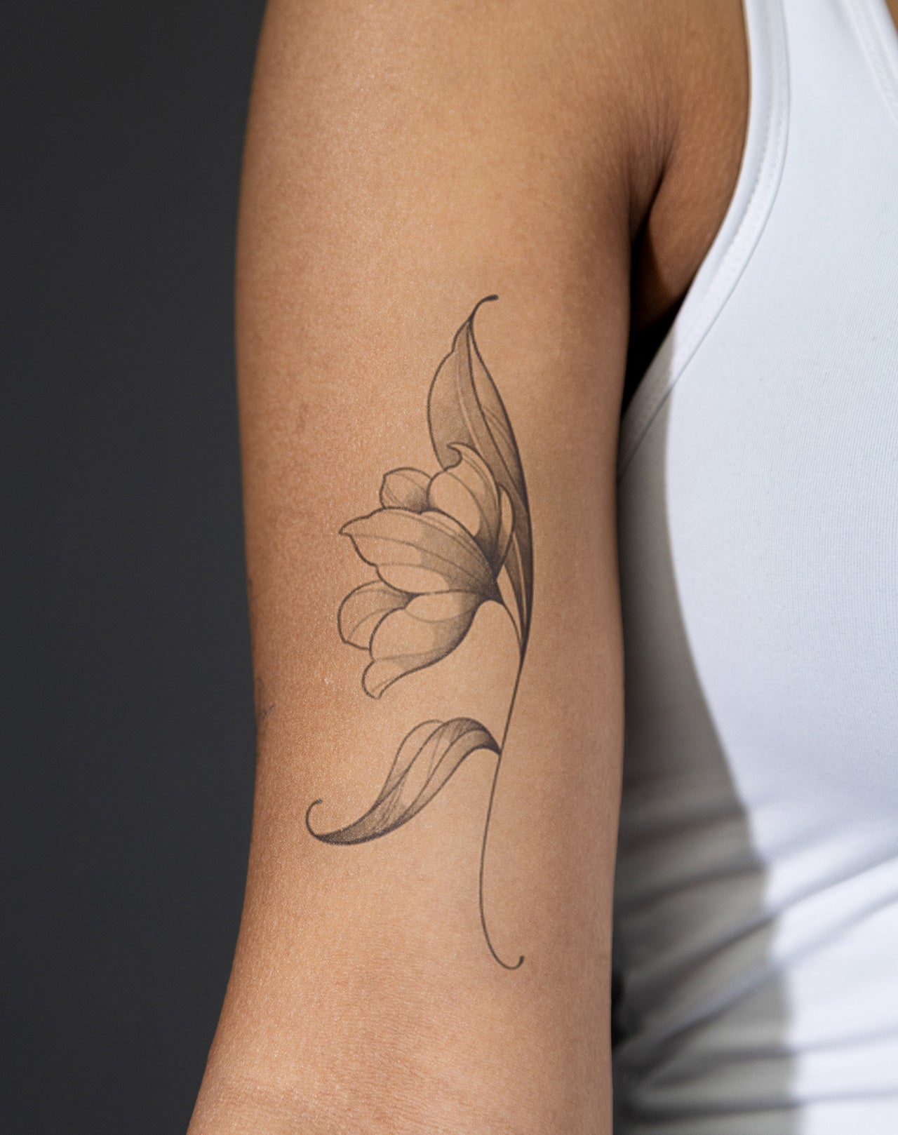 Turnleaf is a 3x6 inch design by @shelltatts that embodies the graceful curve of growth and transformation. A single, elegant blossom bends upward along a long, flowing stem, accompanied by fluid leaves that echo its movement. This tattoo radiates quiet strength and natural elegance—perfect for those who find beauty in simplicity and subtle resilience. Delivered as a 1–2 week EZINK temporary tattoo.