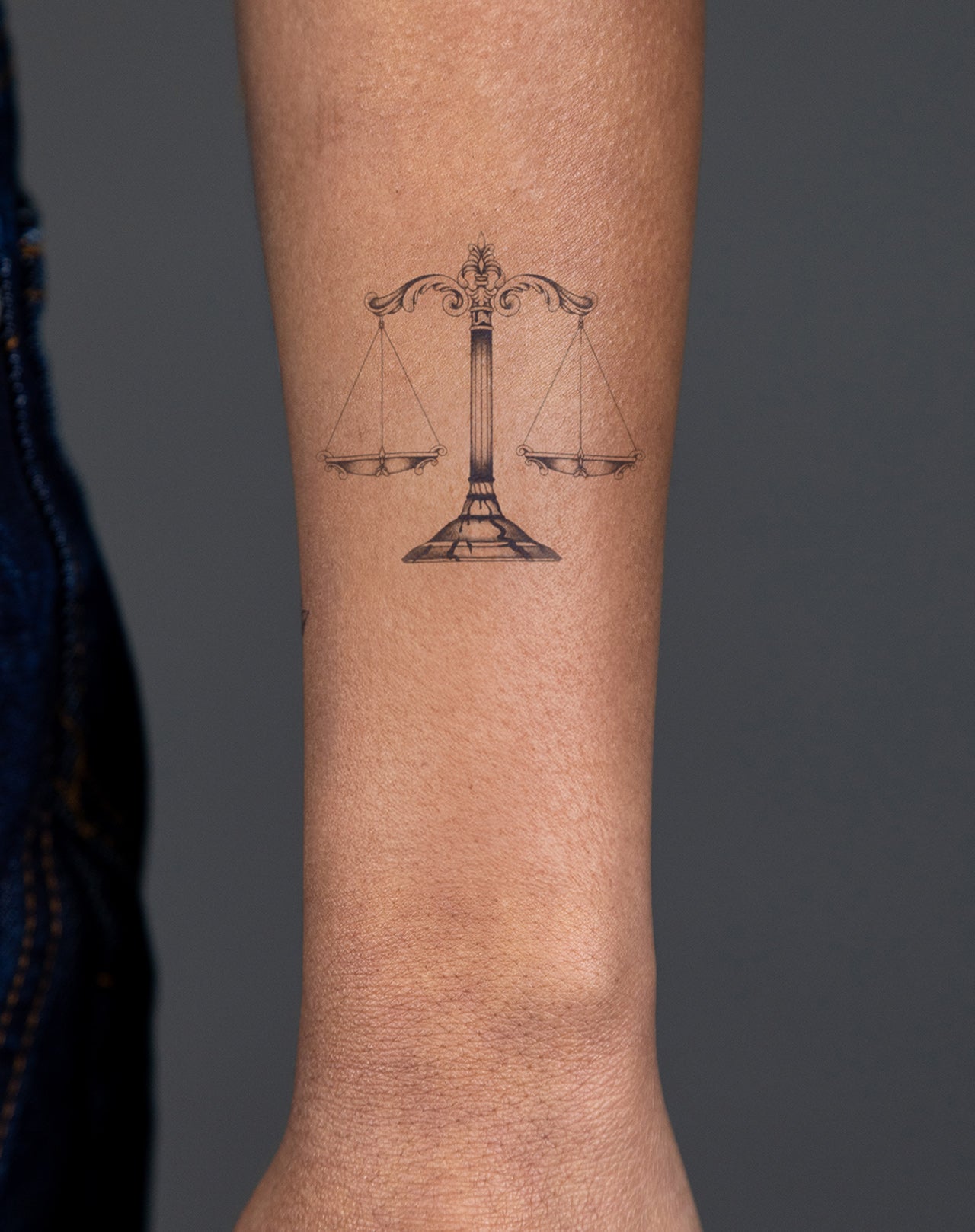 Weighed in Sin is a 4x4 inch design by @brooketattoos, depicting a finely detailed set of ornamental scales. With its delicate linework and balanced symmetry, the piece symbolizes justice, morality, and the eternal search for equilibrium. Both elegant and timeless, this 1–2 week EZINK temporary tattoo speaks to those navigating life’s choices and dualities.