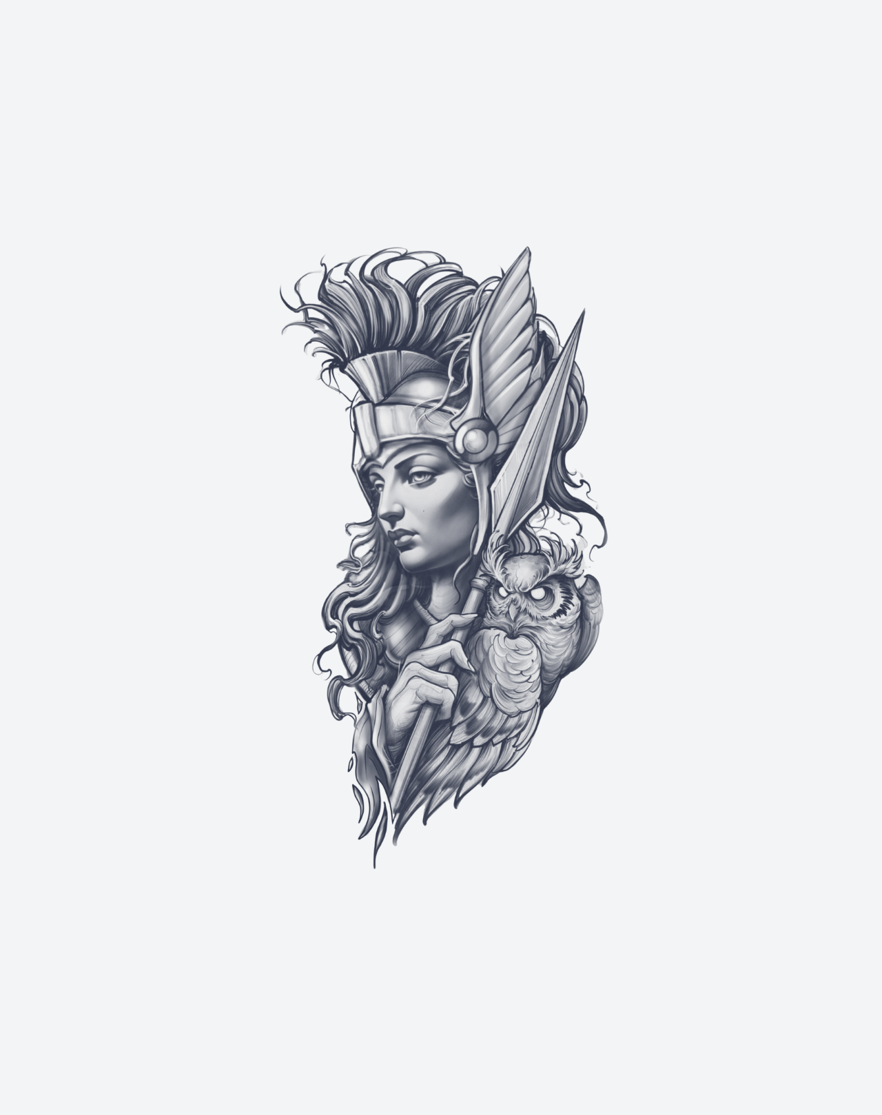 Wisdom & War is a 5.5x9 inch design by @punchy.trent that embodies the balance between intellect and strength. The piece depicts a warrior goddess adorned in armor, her calm gaze paired with an owl at her side—symbols of courage guided by wisdom. Executed in Trent’s signature micro realism, Wisdom & War harmonizes elegance with power through fine detail and measured restraint. This 1–2 week EZINK temporary tattoo is a tribute to clarity in conflict and grace in command—a reminder that true victory begins within.
